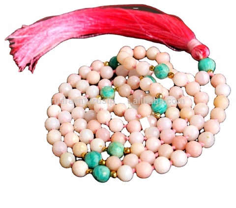 2023トレンドナチュラルピンクオパールアマゾナイト108祈りビーズロザリオロングタッセルマラ宗教ダイヤモンドパールパーティーギフト